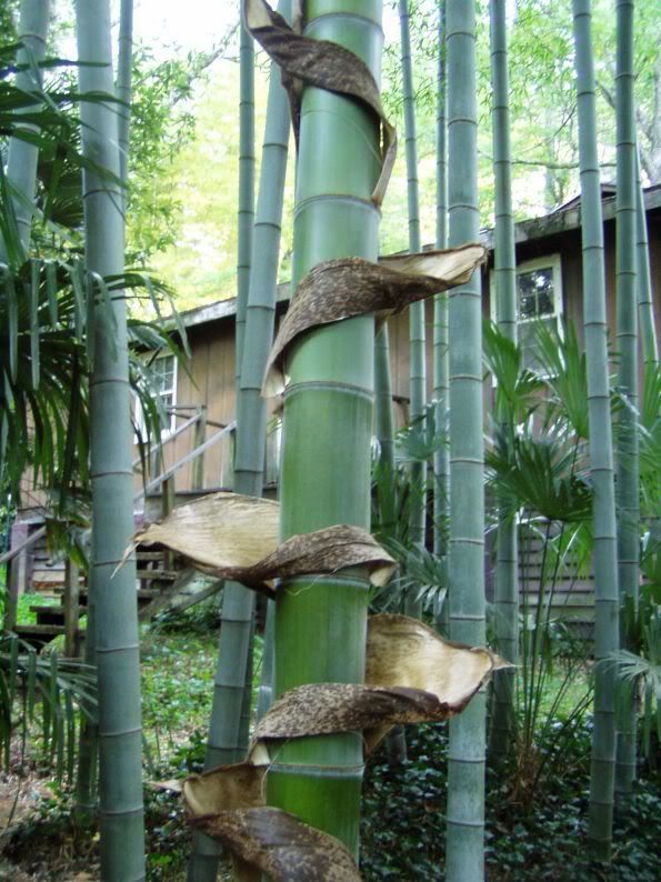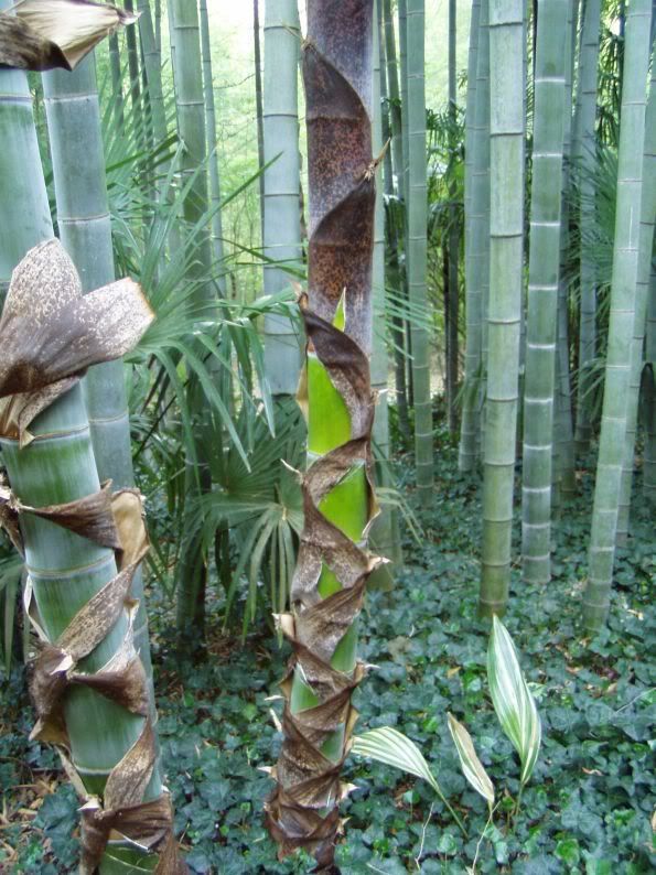If you can resist pulling off the dried culm sheaths from your large diameter moso culms, they will form interesting patterns as they are shed naturally.