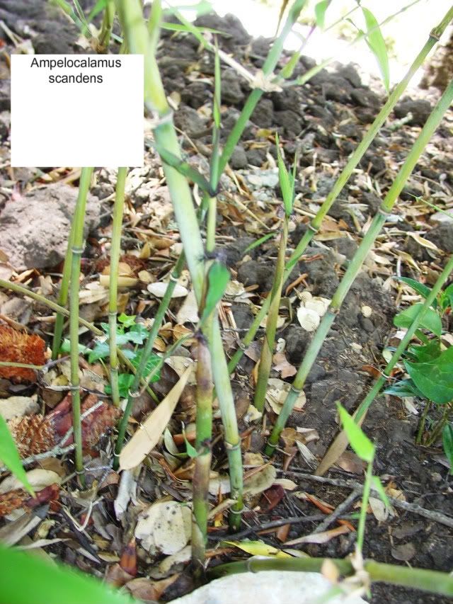 I saw 3 shoots of Bambusa eutuldoides 'Viridivittata' poking their little tips out today. That's a 50 percent improvement over the maximum number of shoots I get each year from it. Another one of my slow culm producing clumps.